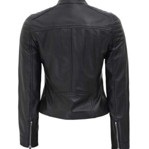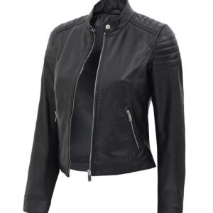 Carrie Womens Black Slim Fit Leather Jacket Return/Exchange Policy